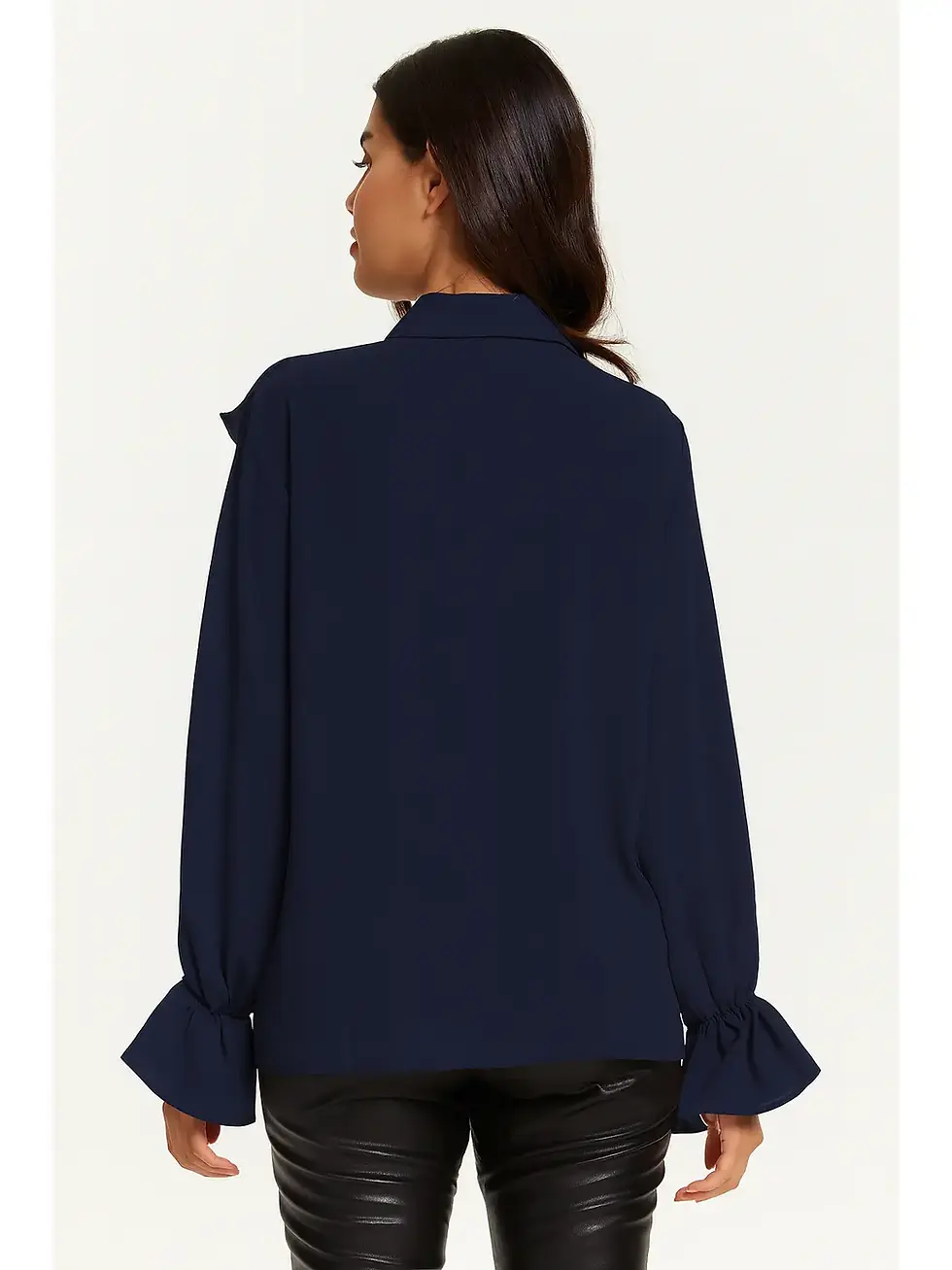 Oversized Frilled Front Shirt with Detailed Cuffs - Navy